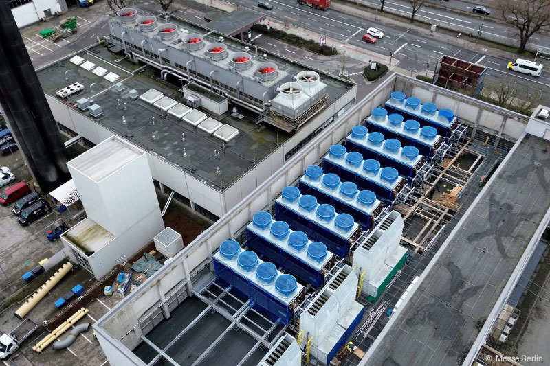 Gemeinsam mit dem Energieunternehmen E.ON und deren Berliner Energietochter BTB modernisiert die Messe Berlin die Kälte- und Wärmeversorgung auf dem Messegelände. Mit einer Fläche von rund 190.000 Quadratmetern gehört das Gelände unter den deutschen Messegesellschaften zu den größten des Landes. Insgesamt 26 Hallen sowie der multifunktionale CityCube Berlin, der hub27 und das Palais am Funkturm müssen das ganze Jahr über je nach Veranstaltung mit Wärme und Kälte versorgt werden. Der Umbau erfolgt im laufenden Betrieb und stellt die umfangreichste Modernisierung der Betriebszentrale seit ihrer Inbetriebnahme im Jahr 1996 dar. Das Bauprojekt soll 2025 abgeschlossen sein.